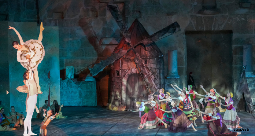 Neşeli sahneleri, yüksek tempolu dansları ve enerjik İspanyol ezgileriyle “Don Kişot” balesi, Aspendos’un tarihi taşları arasında sanatseverlere unutulmaz bir gece yaşattı.